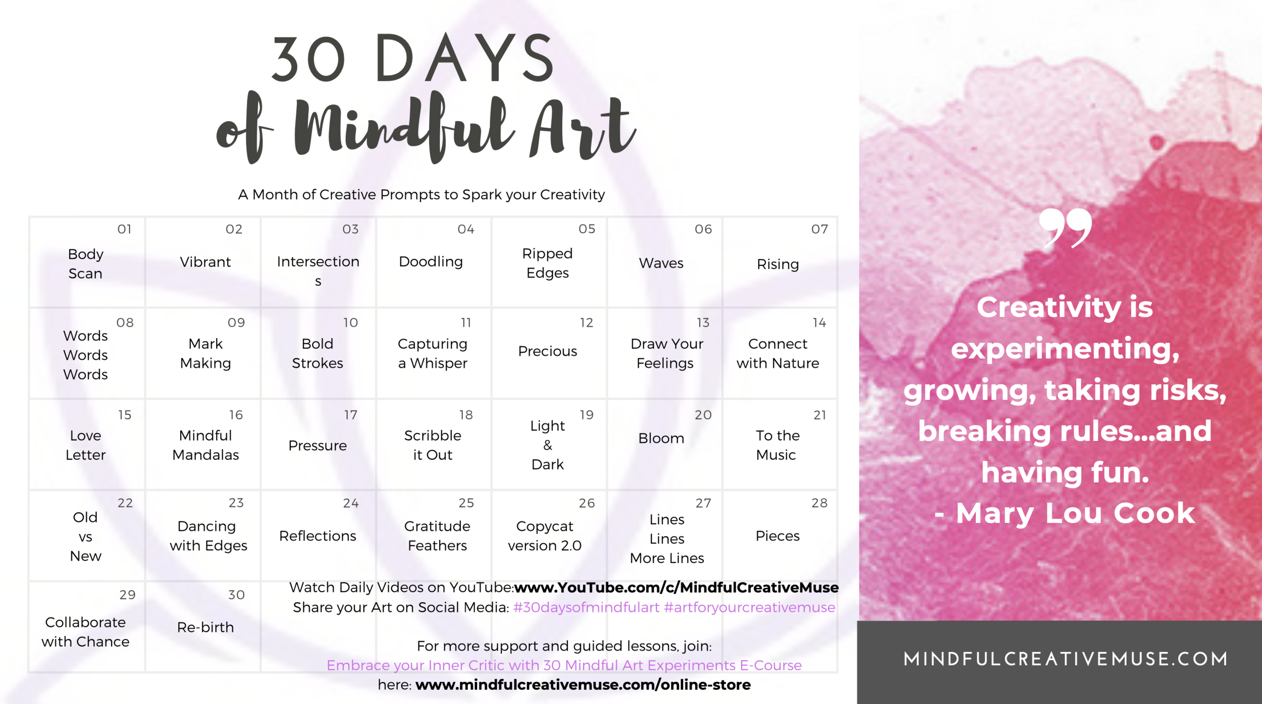 If you want to create but aren’t sure where to start, you’ll love this: Free 30-Day Mindful Art Prompt Calendar