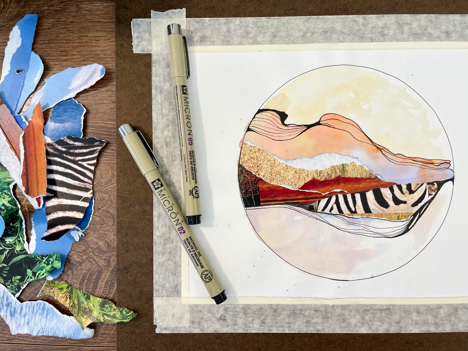 Mindful art journaling invites us to reclaim that wonder. We get to show up with curiosity and compassion, noticing the experience without labeling it good or bad. This creates a safe space for us to play and make art.