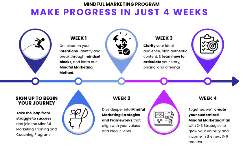 These five tips are a great place to start. And if you're ready to go deeper, the Mindful Marketing Program is here to guide you.